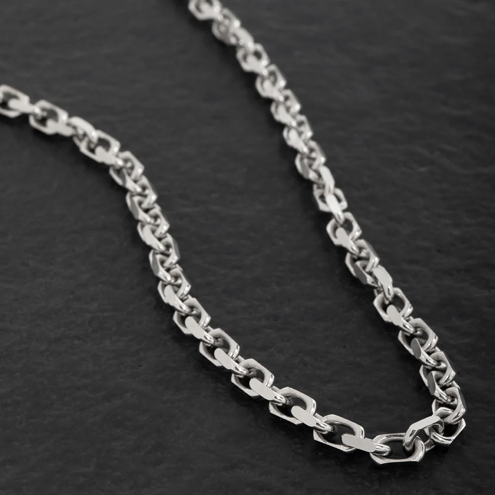 As it rests on your chest, the Forza chain exudes an understated elegance, drawing just the right amount of attention without ever being overbearing. Its robust design commands respect and admiration, enhancing the way you carry yourself in any setting. Whether worn alone or paired with a pendant, the heavy, solid links are a testament to your unwavering strength, their quality guaranteed by the .925 hallmark.
