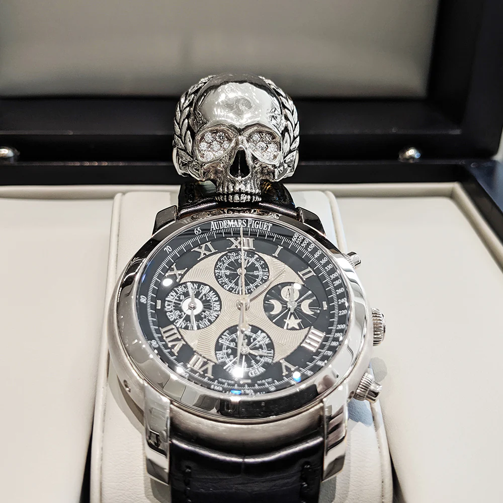 - Mens Silver Memento Mori ring.